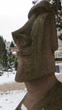 Die Attraktion ein Künstler von den Osterinseln, hat hier eine Moai – Skulptur gefertigt.