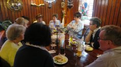In der Gaststätte „Onkel Otto“ konnte jeder sein Leibgericht auswählen und nach Herzenslust genießen. Unser Ziel ist noch nicht erreicht, darum geht es weiter. Auf der Wangener Höhe mit seiner Gütles – Landschaft, mit Streuobstwiesen, über den Weinbergen. Ein verzweigtes Seitental des Neckars. Gibt den Blick mit den Ortsteilen Frauenkopf, Rohracker, Lederberg, Heumaden und ganz oben Sillenbuch frei. Unser Weg schraubt sich nach unten durch Weinberge. Die Landschaft sorgt für Abwechslung. Unser Blick geht auf die andere Seite des Tales, Neckaraufwärts und gibt manches Rätsel auf, über das Gesehene. Irgendwann sind wir am Ziel in Hedelfingen. Die Stadtbahn stand schon bereit, sie brachte uns an der Haltestelle Eszet vorbei, zum Gedenken an die Schokoladenfabrik gleichen Namens, zum Bahnhof Bad Cannstatt. Die S-Bahn bringt uns sicher zurück nach Schorndorf, wo wir mit dem PKW die Heimreise antreten. Ein schöner Erlebnissreicher Tag, bleibt uns in Erinnerung.