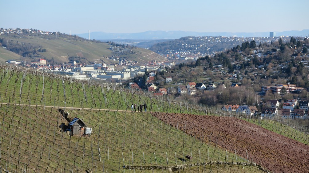 Der noch nicht vom Winter erwachte Wald, gibt uns etwas Ruhe und Geborgenheit, bevor wir den Aussichtspunkt Schillerlinde erreichen. Diesmal geht der Blick über das Neckartal. Im Vordergrund eine weniger begeisterungsfähige Industrielandschaft. Doch auf der gegenüber liegenden Seite, die Westseite des Schurwalds, dem Roten Berg und seinen Weinbergen. Im Hintergrund, das Remstal mit dem Korber Kopf, da fängt man an zu träumen? Doch bei so viel Begeisterung ist schlemmen angesagt.