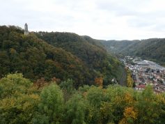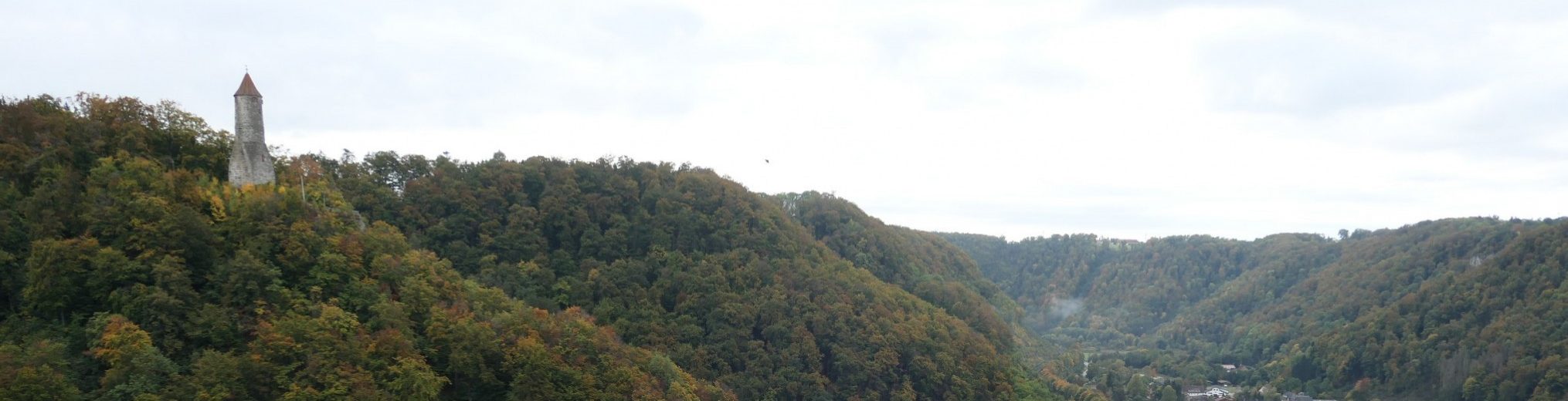 Die Bahn bringt uns schnell nach Geislingen. Auf der halben Strecke löste sich der Schleier auf und die Landschaft erscheint um uns in gewohnter Pracht. Der Aufstieg zur Burgruine Helfenstein, brachte unser Blut in Wallung.