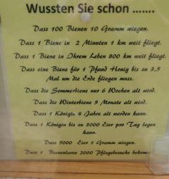 Dazu kommt eine für uns bemerkenswerte Ruhe. So gehen wir nur langsam vorwärts und neigen zum Verweilen. Wenn Gott der Herr auf die Erde geschaut hätte, dann muss es wohl hier gewesen sein und er hätte wahrscheinlich gesagt ich habe alles gut gemacht. Vor vielen Millionen Jahren reichte die Schwäbische Alb bis vor Stuttgart. Genauer gesagt nach Scharnhausen, dort lag auch der nördlichste der Schwäbischen Vulkane. Ein Weißjurablock die oberste Schicht des Schwäbischen Jura ist der Beweis, Die Rückbildung durch Erosion schreitet auch heute noch kaum bemerkbar voran. Wenige Kilometer von unserem Wandergebiet liegt der Ort Pliensbach. Von diesem Ort kommt die erdgeschichtliche Bezeichnung Pliensbachium, Gliederung einer erstmaligen Ammoniten Gattung. Unser Wanderweg läuft durch einen Wald an einer Lichtung vorbei. Dort erklärte ein Imker in einem Schaukasten die überragenden Leistungen der Bienen.