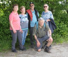 Bald erreichen wir Eckwälden. Über einen parallel laufenden etwas tiefer liegenden Weg kommen wir nach Aichelberg zurück. In der Gaststätte des Kleintierzüchtervereins Bad Boll finden wir eine gute Bleibe. Die Räume sind offen und gut durchlüftet als säßen wir im Freien. Bei den interessanten Gesprächen der Wanderer geht immer wieder ein Blick nach oben an die Decke, wo sich Hornissen beschäftigen. Nach dem Essen servieren folgt ein lustiges Tauschen der Mahlzeiten. Nach dem Motto, was dem einen zu viel, ist dem andern zu wenig. Da soll noch einer sagen das Leben sei langweilig. Ich finde es war ein schöner Tag. .Hans Fink .