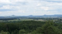 Nach Norden geht unser Blick über Täler, Felder, Wiesen und Auen und im Hintergrund die „Die drei Kaiserberge“.
