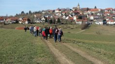 Kaum zu glauben. 33 Albvereinler, treffen sich an einen Sonntag, mitten im Februar um auf dem Marbachrundweg zu wandern. Bei 11 Grad Plus, Sonnenschein und strahlend blauem Himmel. Auf dem Rentnerweg und überqueren des Herrenbachs, gelangt unsere Gruppe in den Wald Ödach. Auf dem Traditionsweg, der die Bürger von Börtlingen zum 3,5 km entfernten, früheren Bahnhof Adelberg – Börtlingen führte. Unsere Route leitet uns parallel auf drei Wanderwegen, nämlich der Herrenbach-, Marbach- und Östlicher Schurwaldrundweg. Beim Verlassen des Waldes, ein immer wieder begeisterter Blick auf Börtlingen, wie die Häuser sich an den Hang schmiegen. Nun verlässt uns der Herrenbachrundweg, der zur Zachersmühle, links abzweigt. Am Rand von Börtlingen Richtung Zell, berührt die Strecke vier Wege. Nämlich, Rotes Kreuz, Schwäbischer Albverein Wanderweg Adelberg – Hohenstaufen, Marbach – , Östlicher Schurwaldrundweg und der Börtlinger Gugelhupferweg. Langsam neigt sich die Strecke Richtung Zell abwärts. Unsere Augen nehmen messerscharf gezeichnete Landschaftsbilder wahr. Zell, Birenbach, Ösel und Hohenstaufen liegen im Blickfeld. Die Natur ruht, bevor sie im Frühling, mit ganzer Macht, ihre schönste Seite zeigt. In Zell zweigt der Östliche Schurwaldweg und die Gugelhupfer-Tour Marbach aufwärts ab. Am ehemaligen Milchhäusle, dokumentieren wir die außergewöhnliche Größe unserer Gruppe.