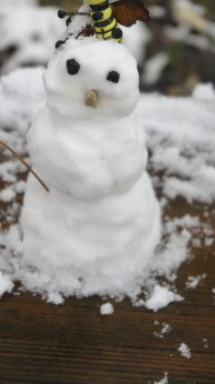 Zur Freude den höchsten Punkt erreicht zu haben, gibt es Schnaps und Gebäck. Während dieser Zeit baut Fritz einen kleinen Schneemann.
