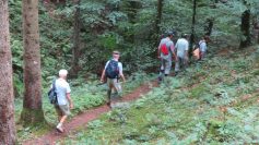 Beim Bembemberlestein wird die Steigung etwas heftig. Alles nimmt ein Ende. Bevor die etwas nicht mehr so frische Wanderschar, durch das langgezogene Alfdorf, den Ausgangspunkt erreicht. Die Gaststätte „Mecki“ im Haselbachtal Ist genau der Punkt, um diese Eindrücke zu verarbeiten. Nach durchschwitzten Stunden, ein kühles Bier, wie es prickelnd die Gurgel hinunterläuft, unbeschreiblich und einfach herrlich. Eine schöne Wanderung geht zu Ende.