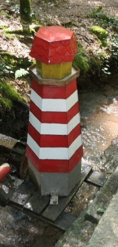Ein Baum mit außergewöhnlichen vielen freiliegenden Wurzeln zieht uns in den Bann. Jetzt kommen die Wasserrädchen: diese lösen bei den Wanderern eine Fotografierlust mit dem Handy aus.