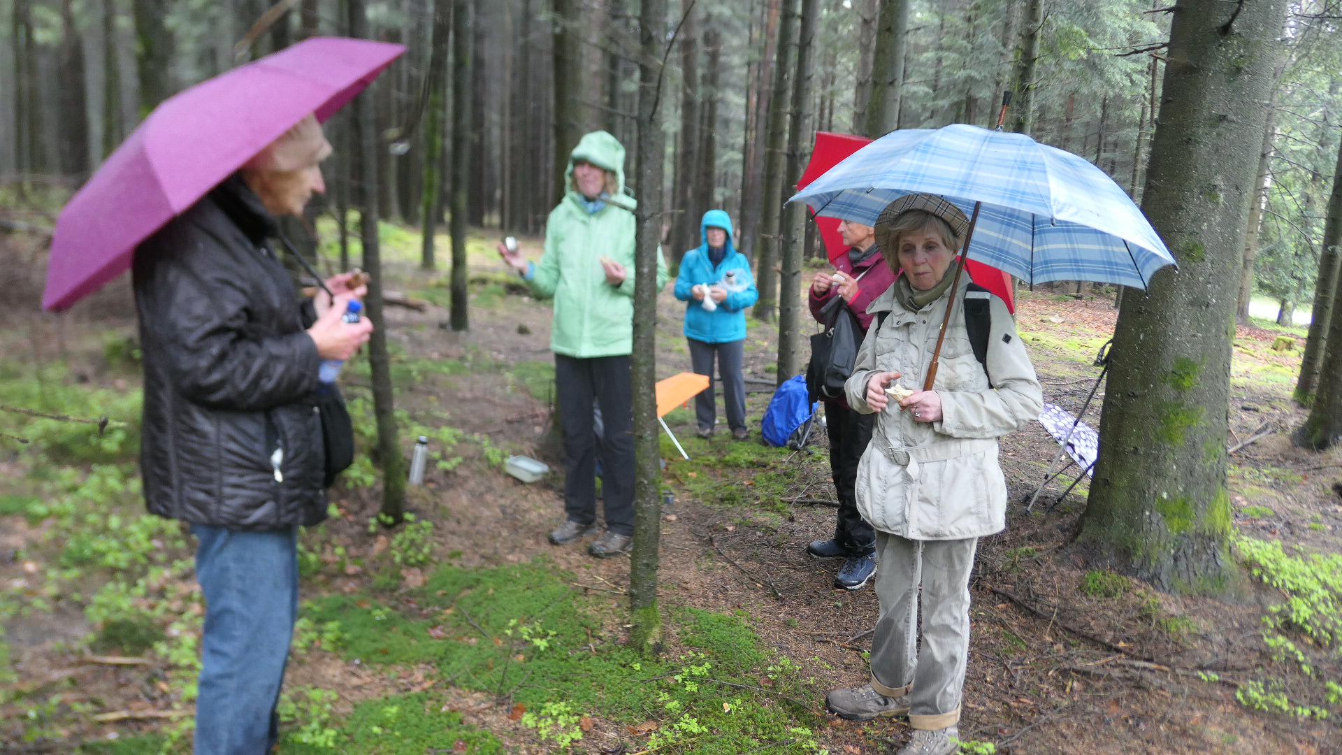 Der Höhepunkt dieser Exkursion in die Franzenklinge sind die Feuersalamander, die uns mit ganzer Hingabe beschäftigen. Diese Eindrücke tun einem gut in der Seele. Steil geht es aus der Schlucht aufwärts zur Hochfläche des Hoblerberges. Doch auch der Regen hat seinen Preis.