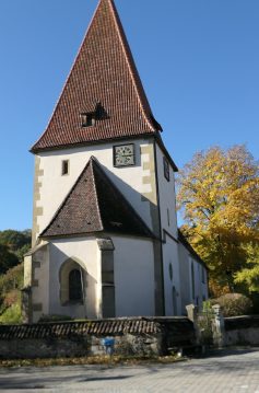 Bei herrlichem Herbstwetter trafen sich 11 Wanderfreunde zu einer Wanderung ins romantische Leintal. In Fahrgemeinschaften fuhren wir nach Täferrot. Auf den Wiesen liegt noch Rauhreif, aber es verspricht ein sonniger Tag zu werden. In Täferrot besichtigen wir die Dorfkirche St. Afra.