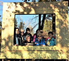 Wir verlassen die Lein an einem neu erbauten Steg und wandern steil auf die Liashöhe. Wenig später erwartet uns ein herrlicher Blick zum Albtrauf. Am Wasserturm hat der Schwäbische Albverein Leinzell eine Hütte mit Grillplatz errichtet. Der Bilderrahmen verlockt zu einem Gruppenfoto.