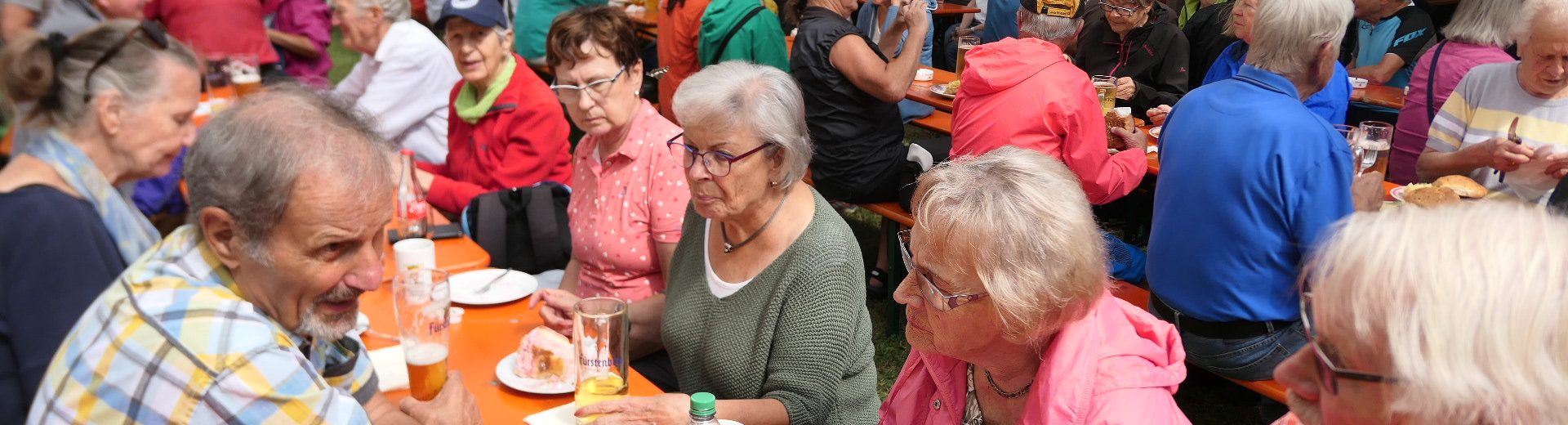 Genau zur Richtigen Zeit erreichen wir die Rehhaldenhütte. Essen,Trinken und Stimmung gut, Organisation Bestens. Zum  Abschluss Kaffee, Kuchen und Torten. Wohlgenährt und zufrieden erreichen wir den Schneiderhof.