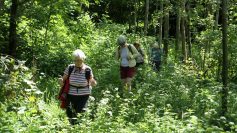 Zielstrebig überqueren die Wanderer eine botanisch interessante Überschwemmungswiese der Lein und kommen so zu unserm Ausgangspunkt am Reichenbachsee zurück.
