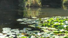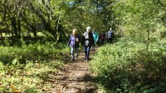 Die Seerosen sind noch nicht aufgeblüht, vermutlich liegt es an der Wassertemperatur, unsere Pause ist kurzweilig, die im Gewässer befindlichen Blesshühner sorgen für Abwechslung. Bei einem Rastplatz verlassen wir das Schaichtal und steigen auf einem Hohlweg steil aufwärts. Auf der Ostseite des Bezenbergs durchqueren wir einen interessanten Wald. Bei den Knaupswiesen und Jungviehweide ist der Wald unterbrochen durch Landwirtschaftliche Nutzung.