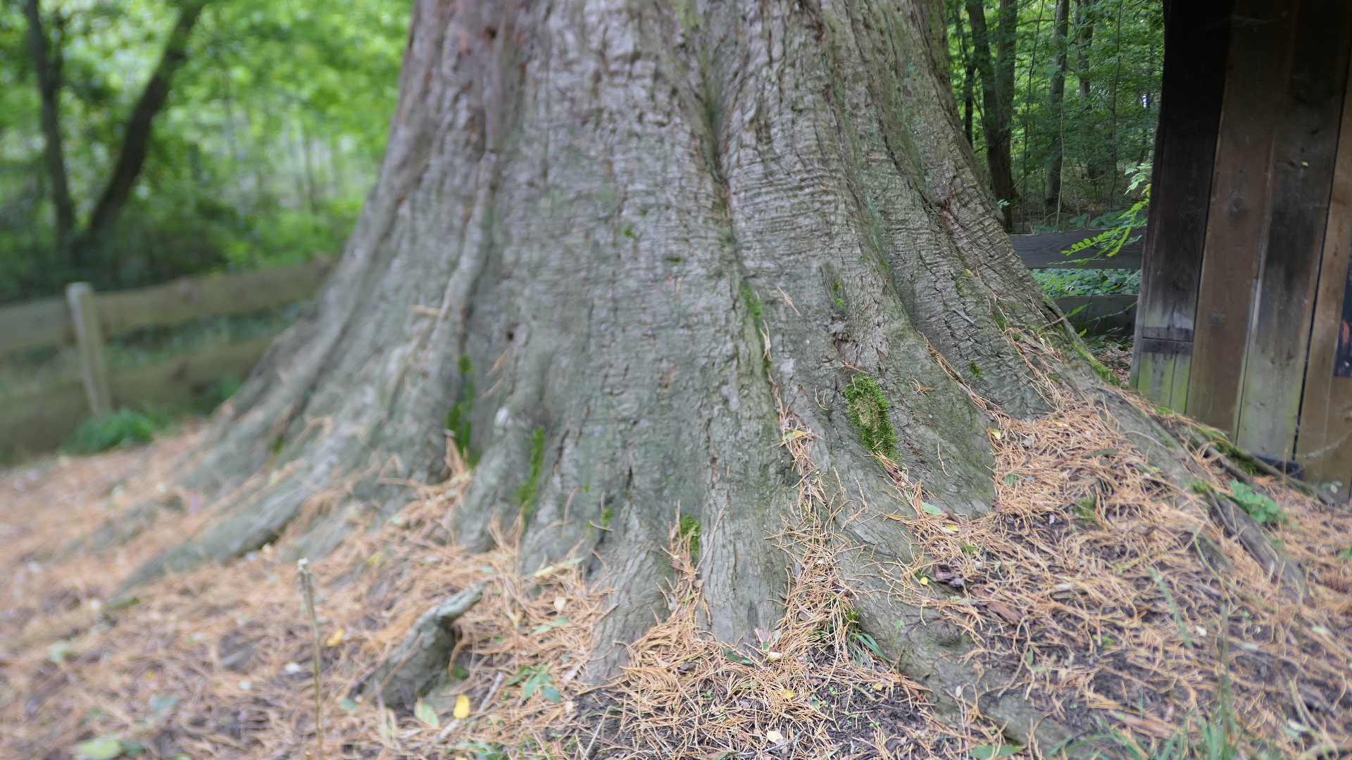 Beim Bilderrahmen haben wir Aussicht auf Waldenbuch und vertreiben unsere Zeit durch Fotografieren. Eine der letzten Attraktionen unserer Wanderung ist der 40 Meter hohe Mammutbaum.