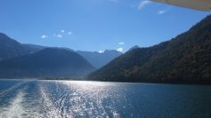 In Irschelberg, beim Kramerwirt, mit Weißwurst, Brezeln und Weißbier, es hätte eigentlich nur noch die Blasmusik gefehlt. Doch das wäre am frühen Morgen doch zu viel Krach gewesen. Die Ereignisse steigern sich. Sonnenschein und blauer Himmel, so erreichen wir den Tegernsee, an Rottach-Egern vorbei, zu unserm Ziel dem Achensee. Unser Bus umrundet den 8,4 Km langen See. Von der Schiffsanlege-stelle“ Seespitz“ erwartet uns der Höhepunkt an diesem Tag.