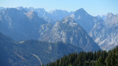 Die Formen der umliegenden Gipfeln, im Hintergrund. Im Pertisau  besichtigten unsere Gruppe das Dokumentations-Zentrum Vitalberg-Tiroler Steinöl. Nach so viel Erlebtem, ließen wir uns gerne einquartieren im Hotel St. Georg zum See in Maurach. Nach einer geruhsamen Nacht und einem gutem Frühstück, erwacht der Tag mit Sonnenschein. Die Rofanbahn-Seilbahn bringt uns auf die Höhe zur Bergstation mit 1840 m. Eine Gruppe wandert zur Dalfazalm. Die andere bleibt in der Nähe und begnügt sich mit der Mauritz – Alm. Traumhafte Ausblicke, bei klarer Sicht, eine Temperatur an Wärme, die keinen Wunsch offen lässt. Nachmittags treffen sich alle auf der Terrasse der Erfurter Hütte mit herrlichem Blick ins Karwendel-Gebirge.