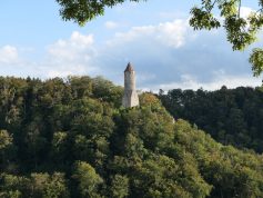 Wanderstrecke: Geislingen – Burgruine Helfenstein – Ödenturm – Mühltalfelsen – Gasthaus Ziegelhütte – Tirolerfelsen – Ostlandkreuz – Geislingen.