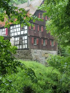 Mächtig steht sie in der Tiefe des Tals, dahinter ein imposanter Wasserfall. Der Amtsarzt von Welzheim Justinius Kerner schrieb hier das Gedicht „Der Wanderer in der Mühle“. Nun ist es nicht mehr weit zum Ausganspunkt.