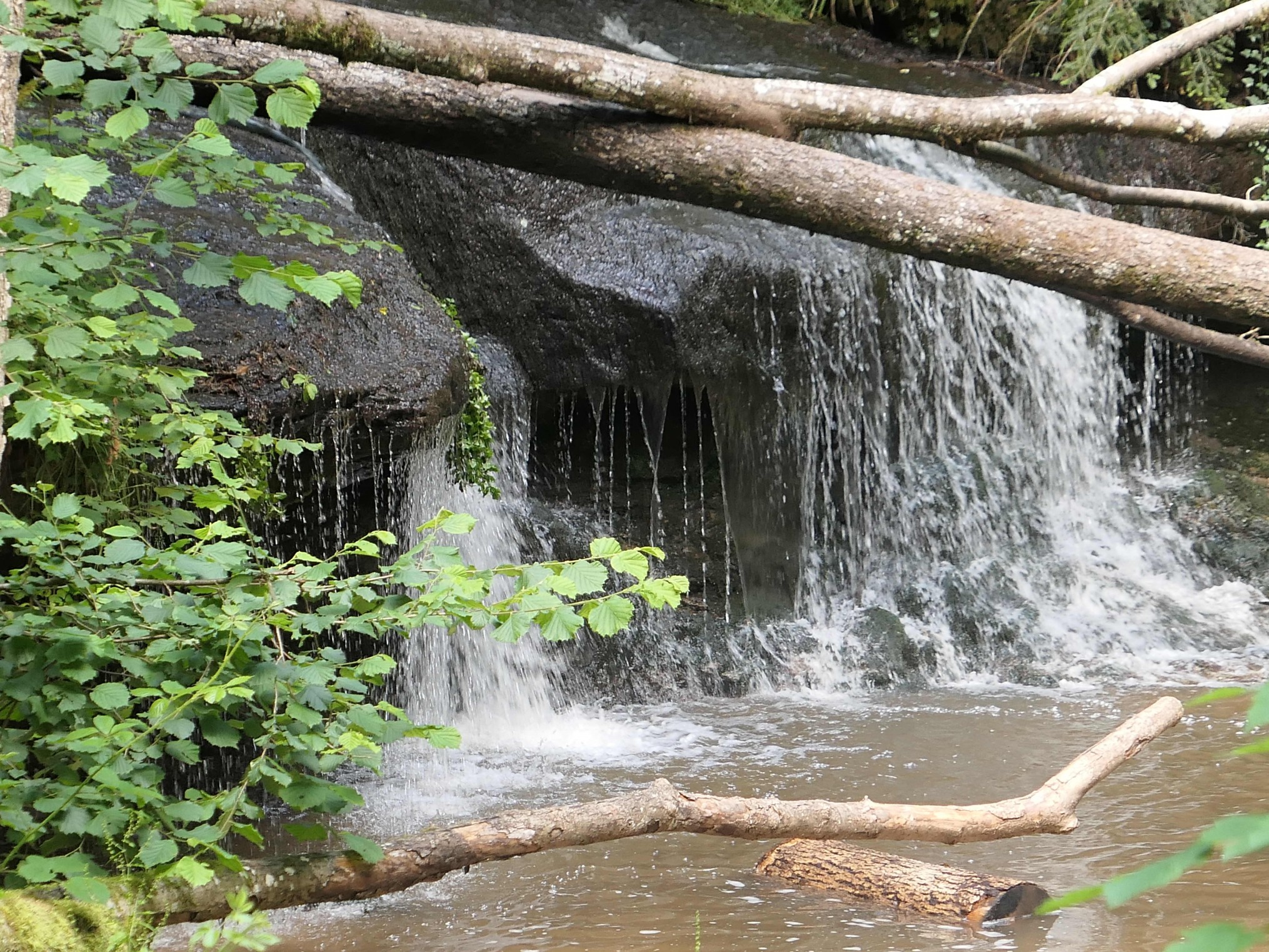 Sie ist eine kleine Seitenklinge des Aspenbaches zur oberen Wieslauf. Nach einer Sage wird der Name von einem Falschgeldfund abgeleitet. Die Felsengrotte ist aus Stubensandstein, Hufeisenförmig ist die Klinge, durch Erosion entstanden. Auf der Höhe angekommen, liegt Schmalenberg. Ein herrlicher Blick, übers Wieslauftal. Abwärts geht’s ins Strümpfelbachtal mit seinen vielen Wasserfällen. Steinbach, wenns nichts zum Trinken gibt, sind wir schnell vorbei. Nun die Wieslaufschlucht ein letztes auf und ab über dem Wasser der Wieslauf.
