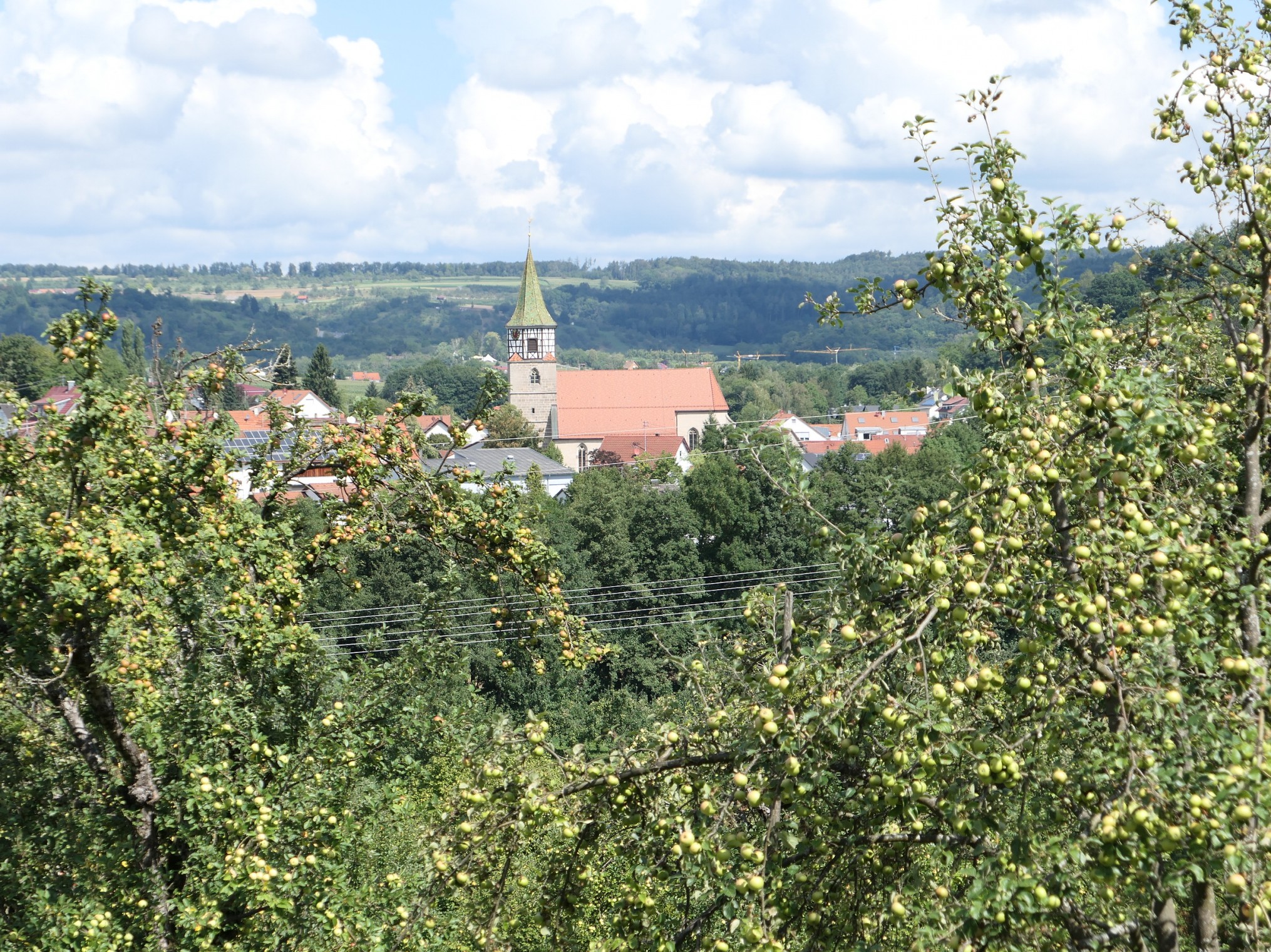 Vom im Tal liegenden Oppelsbohm gelangt unser Wanderweg zwischen den mit Früchten voll gehangenen Obstbäumen aufwärts zum Kleinen Dörfchen Ödernhardt.