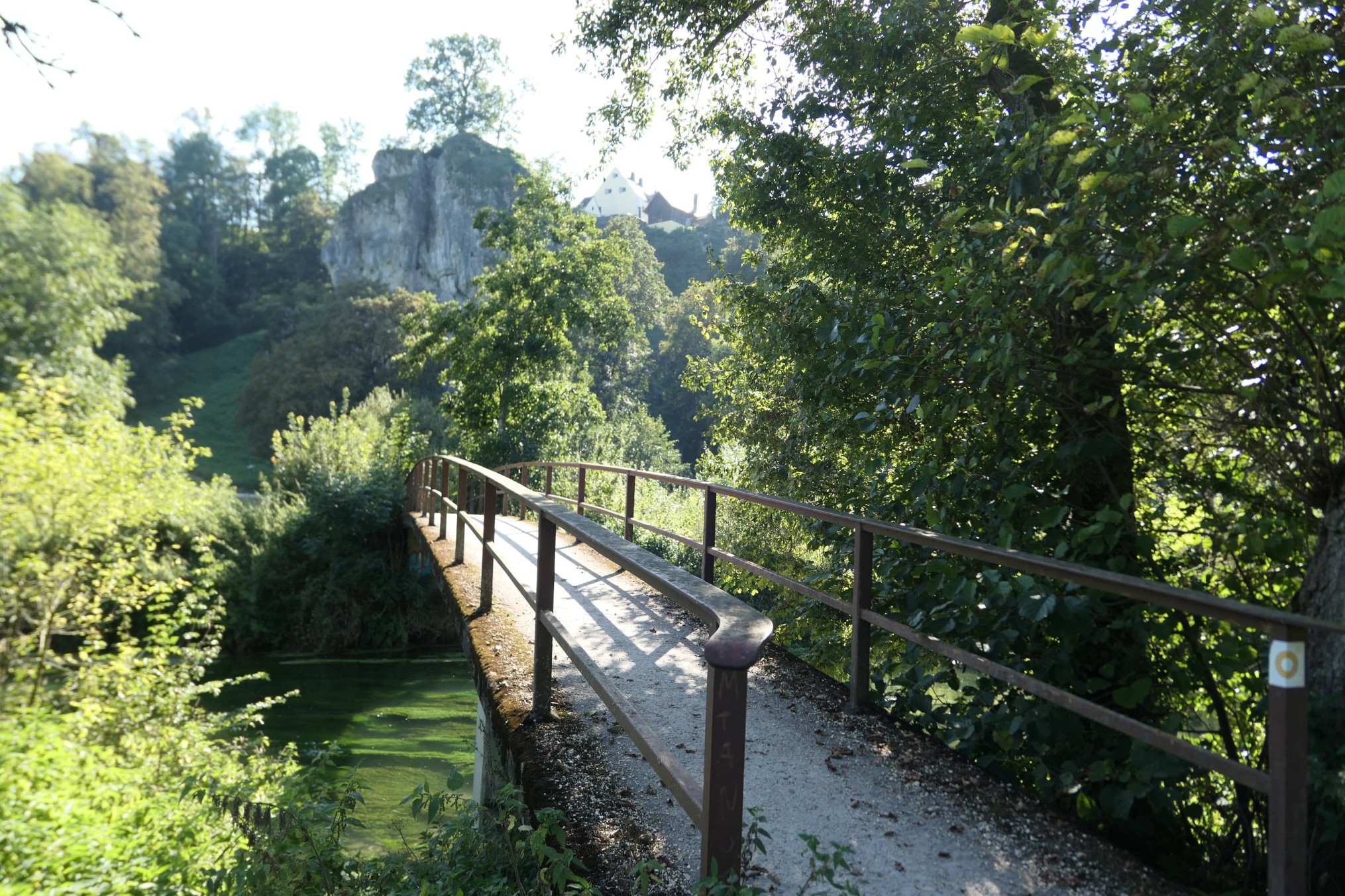 deren Name aus einer Sage entstand. Obwohl es noch viele, größere Felsen in diesem Tal gibt. Durch dieses Tal schlängelt sich die Brenz. Wir wandern durch eine intakte Landschaft. Vorbei an einem frisch renovierten Heimatmuseum von Herbrechtingen mit Holzbrücke
