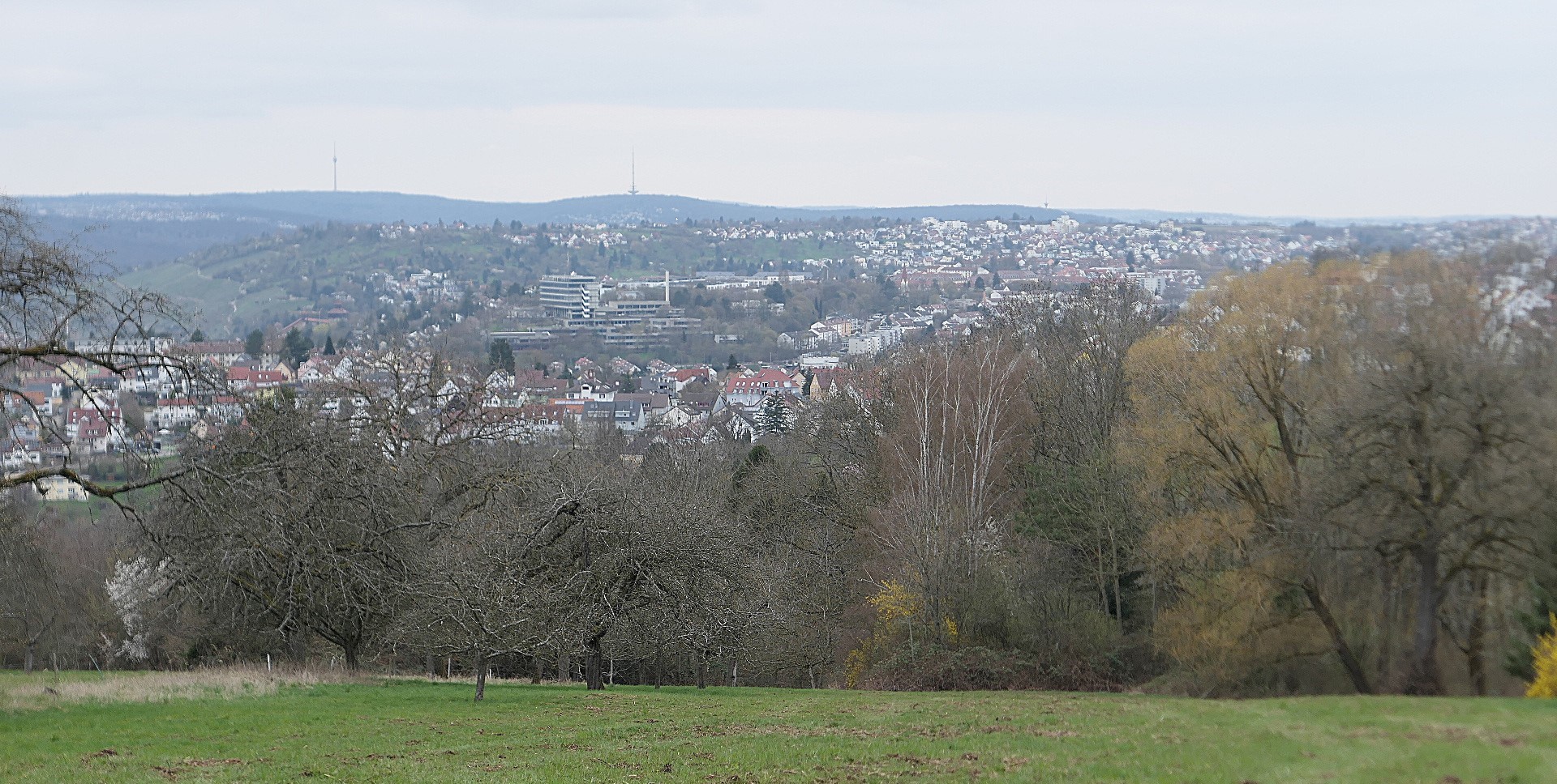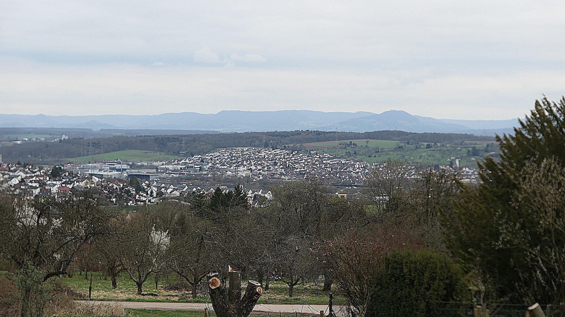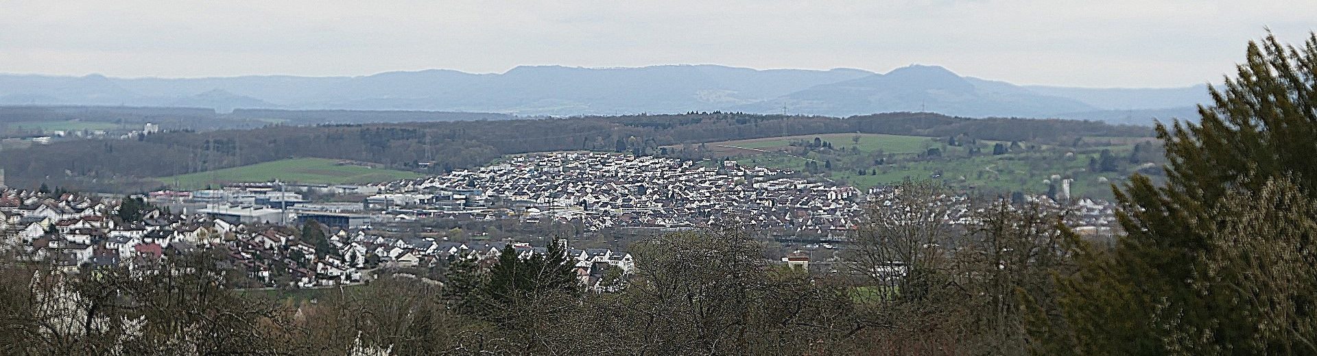 Dabei blicken wir übers Tal und Stadt, zur Schwäbischen Alb.
