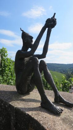 Streckenbeschreibung: Durch die Weinberge geht’s zur Y-Burg . Von dort schöne Aussicht auf den Ort. An und in der Burg, Skulpturen des bekannten Strümpfelbacher Bildhauers Karl-Ulrich Nuss. Auf dem Mäuerle hockt der Weingeist, von den Einheimischen liebevoll „S Deifele“ genannt.