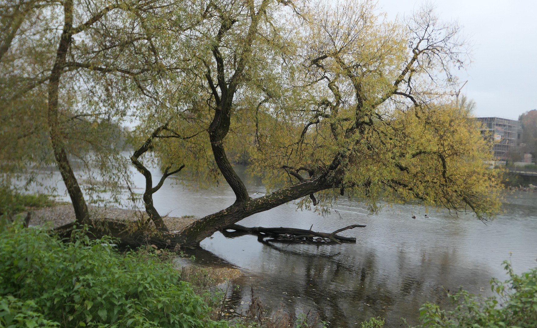 Diese zu begehen, löst bei der Gruppe viel Spaß und Heiterkeit aus. Am Denkmal von Friedrich Hölderlins vorbei kommen wir zum Neckar. Unser nächstes interessantes, erwähnenswertes Motiv ist eine Weide am Ufer, deren Äste sich graphisch und das satte Grün ihrer wenigen Blätter, sich als Kunstwerk in der Natur darstellen.