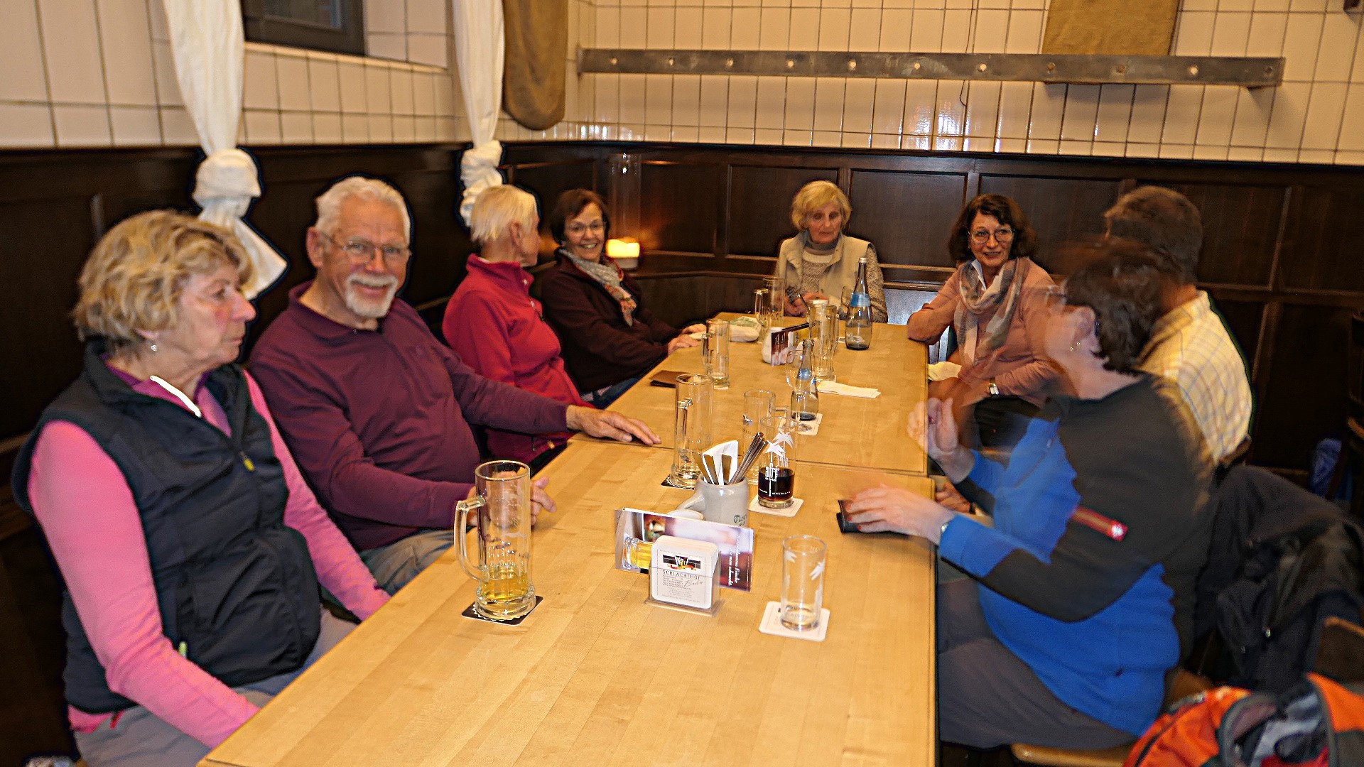 In der Gaststätte Schlachthof in der warmen Stube tauen unsere Gemüter auf. Wir finden es hier gemütlich und denken über den zurücklegenden Tag nach. Es war schön, unser Fazit „Es hätt scho a bissle d‘ Sunn scheina kenne“ und so neigt sich ein erlebnisreicher Tag zu Ende.    Hans Fink