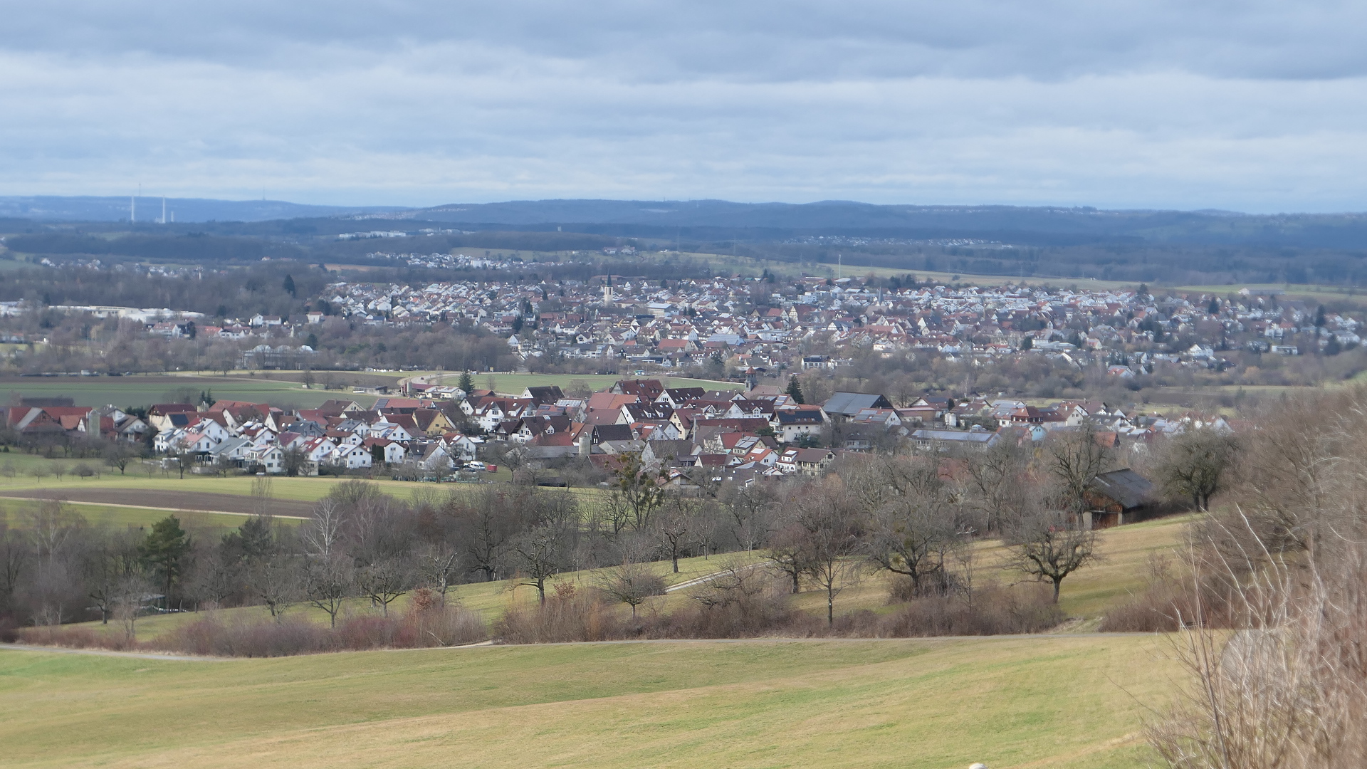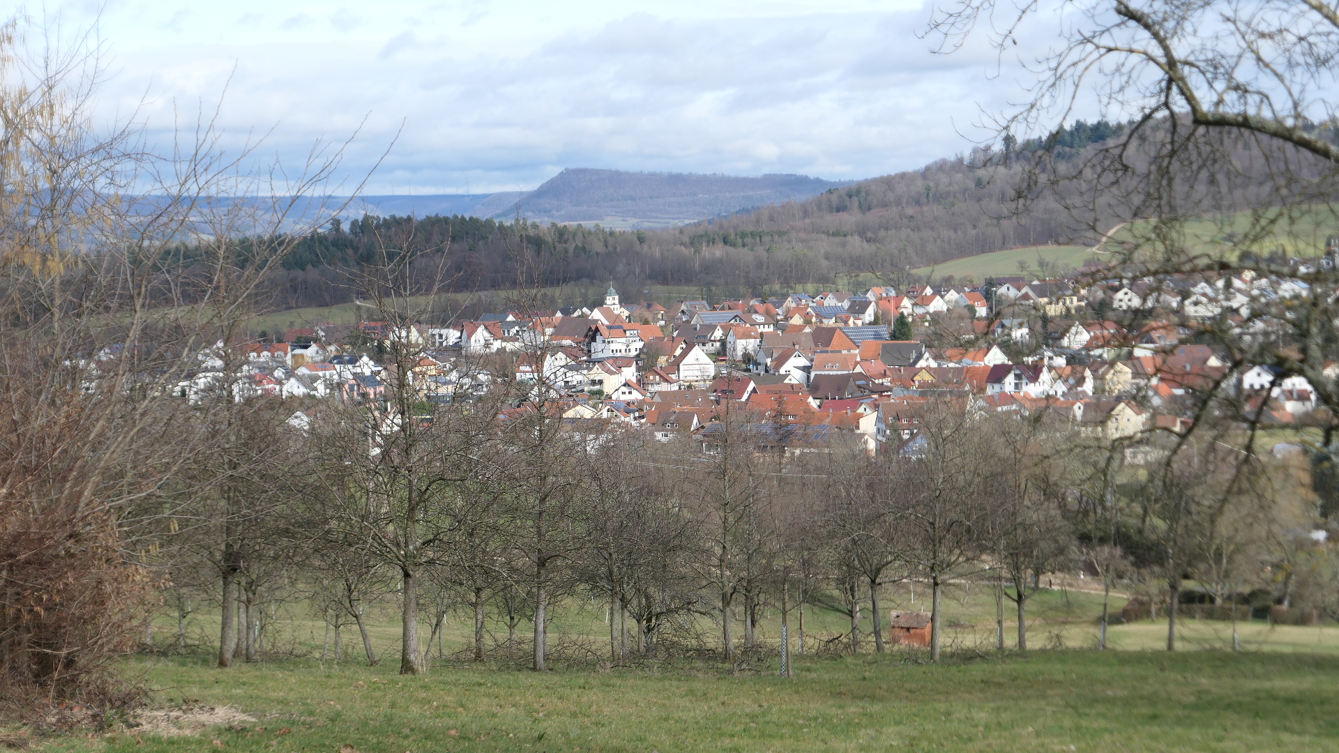 Jetzt geht unser Weg östlich vom Kuhnberg durch ein Streuobstwiesengebiet. Unser Blick wird wieder auf Schlat, nur dem Wasserberg zugewandten Seite gelenkt. Vor uns der Mähdlesberg mit Fuchseck. Am Satteln zum Kuhnberg erleben die Wanderer ein akustisches Ereignis. Auf der  Ortschaft Schlat zugewandten Seite eine Ruhe und Stille. Doch kaum sind wir auf der Eschenbacher Seite des Bergsattels angelangt, vernehmen wir rauschende, heulende Geräusche die, die Kraft des Windes widerspiegeln. Auch hier ein schöner Blick ins Albvorland. Die Jahreszeit erlaubt es uns, am Westhang des Kuhnbergs über die Bergwiesen zu unserem Ziel der TSV – Vereinsgaststätte zu kommen. Bei Speise und Trank lassen wir nochmal die Erlebnisse an diesem Tag Revue passieren.                  Hans Fink