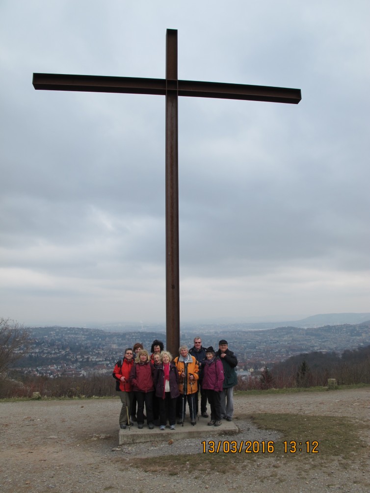 Heute ist Landtagswahl, wieder einmal ist der Albverein an diesem Tag unterwegs. Es ist schon ein bischen kalt und es weht auch ein leichter Wind als wir uns in Göppingen am Bahnhof treffen. Die Bahn bringt uns mit leichter Verspätung nach Stuttgart, vor dem Hauptbahnhof erreichen wir gerade noch den Bus, der uns auf die Höhe von Stuttgart-West bringt.Die Zeppelin-Aussichtsplatte ist der erste Blick über die Stadt und die umliegenden Berge. Der Panoramaweg-Stuttgart-West ist kurzweilig, immer wieder gibt es einen Durchblick auf die Stadt, die Villen hier oben versetzen manchen in Staunen. Abwärts geht es die Karl-Adler-Staffel eine der rund 400Treppenanlagen dieser Art, im Schwäbischen „Stäffele“ genannt. Am Rand von Vogelsang, steigen wir auf durch den Wald an den Fuß vom Birkenkopf, im Volksmund Monte Scherbellino genannt. Auf dem Gipfel hat man eine herrliche Aussicht, trotz Dunst in alle Richtungen. So ist eine Pause um das Hunger- und Durstgefühl zu stillen, keine schlechte Idee. Zum Nachtisch gibt es Kässfüße und Schnaps. Frisch gestärkt, setzen wir die Wanderung fort. Über den Rößlesweg , gelangte unsere Gruppe zum Pfaffensee. So kommt ein zusätzliches Element, das Wasser zur Abwechslung hinzu. Neuer- und Bärensee setzen die Reihe der Seenplatte fort. Das Bärenschlößle thront über allen diesen Gewässern. Bewegung macht Hungrig und Durstig, die Gelegenheit muss genutzt werden , auch hier gibt es viele Köstlichkeiten in flüssiger und fester Form. Das Mahdental, Bushaltestelle Schattengrund sollte unser Endpunkt sein. Doch leider war der Haltepunkt, wegen Bauarbeiten gesperrt. So war noch ein wenig Laufen angesagt, durch den Wald nach Büsnau zur nächsten Bushaltestelle. Der Bus brachte uns auf abenteuerlicher Fahrt nach Heslach-Vogelrain. Von hier fuhren wir mit der U-Bahn zum Börsenplatz. Jetzt nur noch ein kleines Stück zum Carlsbräuhaus am Schloßplatz. Die angenehme Einkehr, bleibt uns immer in Erinnerung. Wir sind glücklich über diesen schönen Tag.