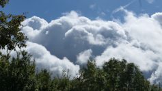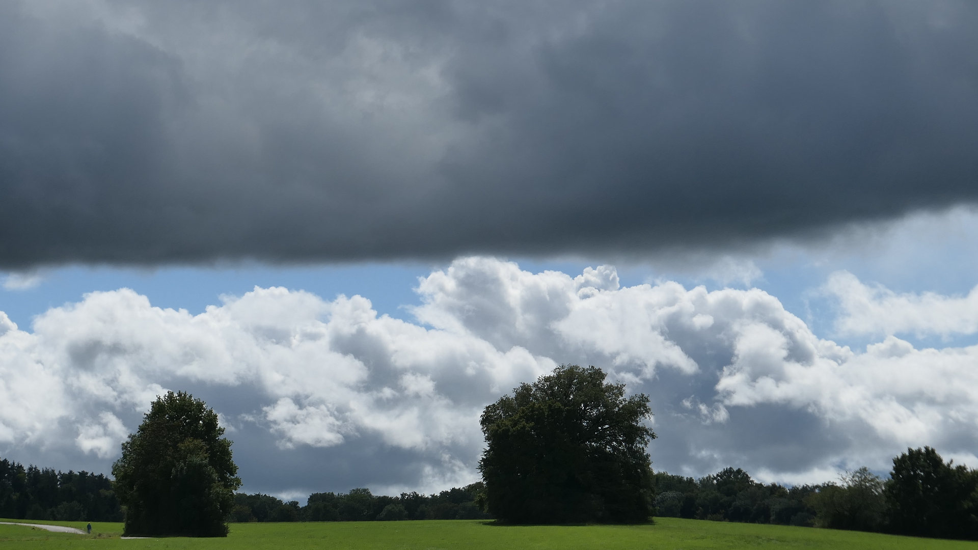 Über uns die Sonne, vor und hinter uns, vom Sturm geformte, fantastische Wolkenberge, türmen sich auf und erzeugen, wunderbare grafische Kunstwerke am Himmel.