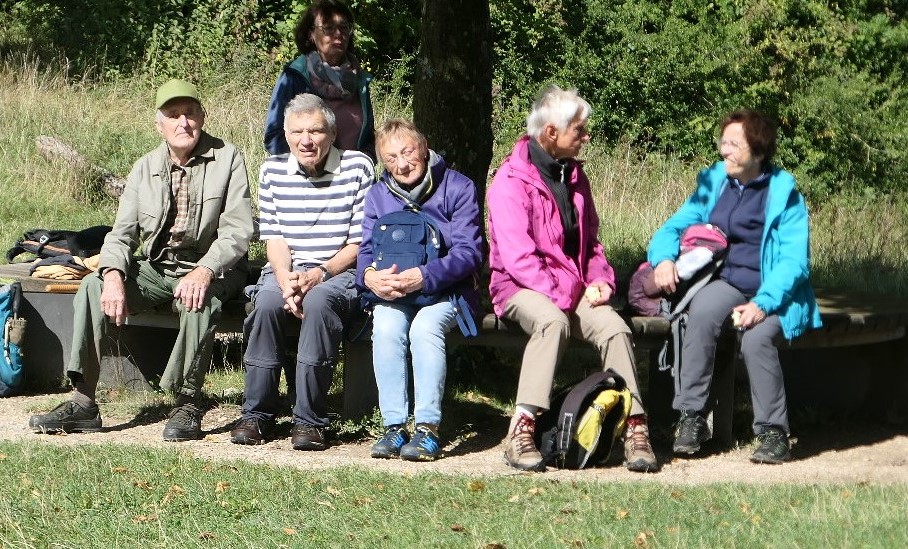 Morgens hat es noch geregnet. Doch beim Treffpunkt ist es Trocken. Die Stimmung fühlt sich herbstlich an. Über Hohenstaufen, Ottenbach, Rechberg nach Wißgoldingen kommen wir zum Ausgangspunkt unsere Tour. Landschaftlich war diese Anfahrt schon ein Erlebnis. Am Beginn dieser Wanderung sind wir sieben Teilnehmer. Mit noch frischen Kräften geht es durchs Krähbachtal auf dem Hornberger Weg. Die Gesprächsstoffe der Gruppe sind Ereignisse der letzten Zeit. Über einen Wiesenweg geht es aufwärts zum Fuß des Schwarzhorns. Leider wurde das Jägerfest am Heldenberg Kreuz nach Winzingen verlegt. So ging die Tour weiter über einen weichen Hangweg zur Reiterleskapelle.